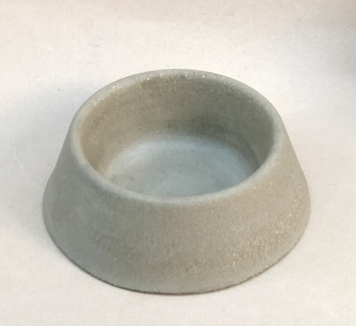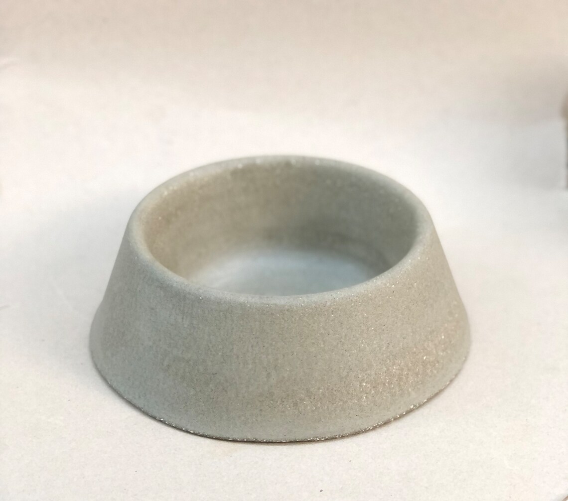 Natural concrete bowl for pets. Holds 32 oz of water. Perfect for indoor use or outdoor use. Non slip rubber under padding which makes it sturdy and not easy to tip over.